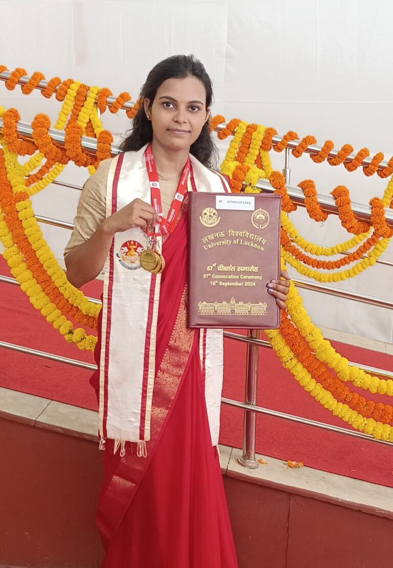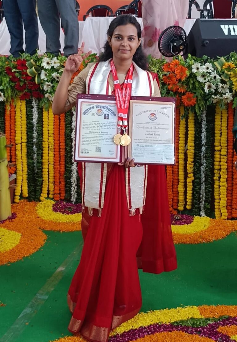 Janhvi Patel, a Post Graduate student of the Department of Sanskrit in the College, was awarded three Gold Medals- (1.) Raja Sir Harnam Singh- Harcourt Butler Gold Medal, 2024 for being the best Post Graduate student in Arabic/Persian and Sanskrit, (2) Kumari Vimla Puri Gold Medal, 2024 for being the best Post Graduate student in Sanskrit, (3.) Smt. Chandra Devi and Shri Radha Krishan Arunvanshi Gold Medal, 2024 and Smt. Indrani Devi Memorial Cash Prize by virtue of having secured the highest aggregate percentage of marks in M.A. (Sanskrit) Programme (Semester I to Semester IV), 2022- 24, in the Convocation of the University of Lucknow held on 16.09.2024.