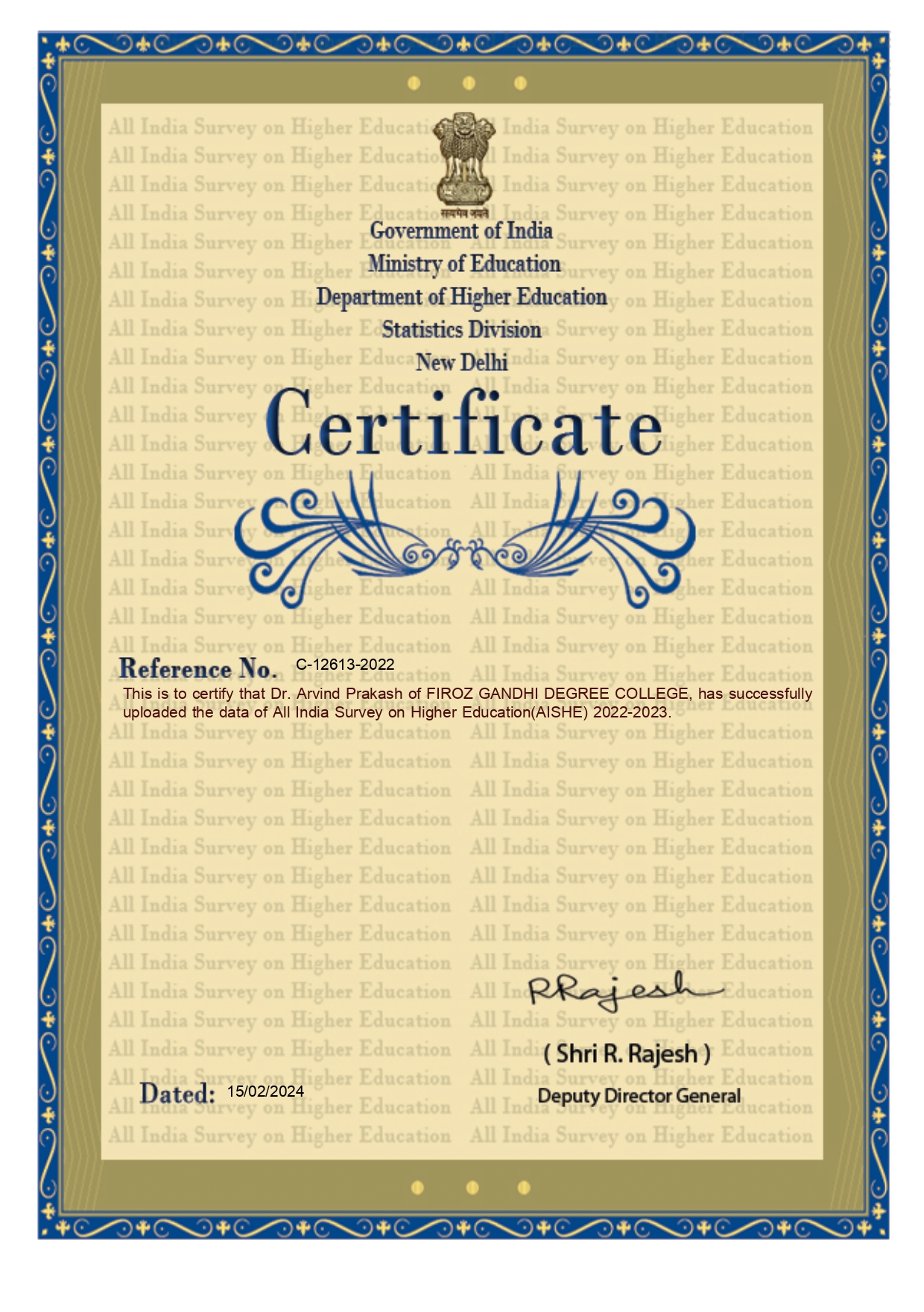 The institutional philosophy of Feroze Gandhi College, Rae Bareli is aptly reflected in its motto- ‘Gyan, Shanti evam Pragati’ (‘Knowledge, Peace and Progress’) signifying that the attainment of real knowledge leads to the dawn of peace which in turn results in all round progress.