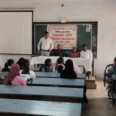 While the aid of Rs.1,500/- each was directly credited into the Bank accounts of 385 students, cheques of the value of Rs.1,500/- each were handed over to the remaining 15 sudents by Dr. S.K. Pandey, the Chief Guest of the Programme and the Joint Secretary of the Managing Committee and the Principal, Prof. Manoj Kumar Tripathi in a symbolic programme held on 04.04.2025. The programme was conducted by Prof. U.B. Singh, the Convener of the Students’ Welfare Committee which formulated the policy for disbursing the economic aid to the students. In the end, the vote of thanks was proposed by Prof. B.D. Mishra, the Vice Principal of the College. Other Members of the Students’ Welfare Fund Committee including Prof. Rajesh Kumar, Dr. Arvind Singh, Dr. Shikha Jaiswal and Dr. Garun Seth were also present on the occasion. Valuable secretarial assistance was provided to the Committee in identifying the student beneficiaries by the Office staff including Shri Dinesh Singh, Shri Alok Trivedi, Shri Sandeep Chandra Srivastava, Shri Virendra Pandey and Shri Santosh Pandey.