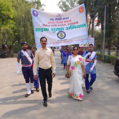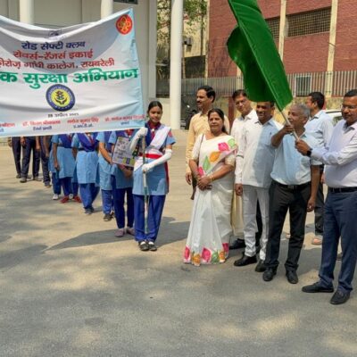 The Road Safety Club of the Rovers and Rangers Unit of the College took out a Road Safety Rally on the roads of Rae Bareli city to inspire the people to adhere to the road safety norms. The Rally was flagged off by Shri Manoj Kumar Singh, Assistant Regional Transport Officer (A.R.T.O.), Rae Bareli and Prof. Manoj Kumar Tripathi, Principal in the forecourt of the College in the presence of Prof. B.D. Mishra, Vice Principal, Prof. U.B. Singh, Head, Department of Sociology, Dr. Arvind Singh, Chief Proctor, Dr. Kiran Srivastava, Ranger Leader, Dr. Ajay Singh Chauhan, Rover Leader and the Rovers Crew and Rangers Team of the College.