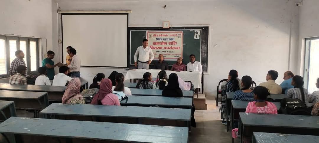 While the aid of Rs.1,500/- each was directly credited into the Bank accounts of 385 students, cheques of the value of Rs.1,500/- each were handed over to the remaining 15 sudents by Dr. S.K. Pandey, the Chief Guest of the Programme and the Joint Secretary of the Managing Committee and the Principal, Prof. Manoj Kumar Tripathi in a symbolic programme held on 04.04.2025. The programme was conducted by Prof. U.B. Singh, the Convener of the Students’ Welfare Committee which formulated the policy for disbursing the economic aid to the students. In the end, the vote of thanks was proposed by Prof. B.D. Mishra, the Vice Principal of the College. Other Members of the Students’ Welfare Fund Committee including Prof. Rajesh Kumar, Dr. Arvind Singh, Dr. Shikha Jaiswal and Dr. Garun Seth were also present on the occasion. Valuable secretarial assistance was provided to the Committee in identifying the student beneficiaries by the Office staff including Shri Dinesh Singh, Shri Alok Trivedi, Shri Sandeep Chandra Srivastava, Shri Virendra Pandey and Shri Santosh Pandey.