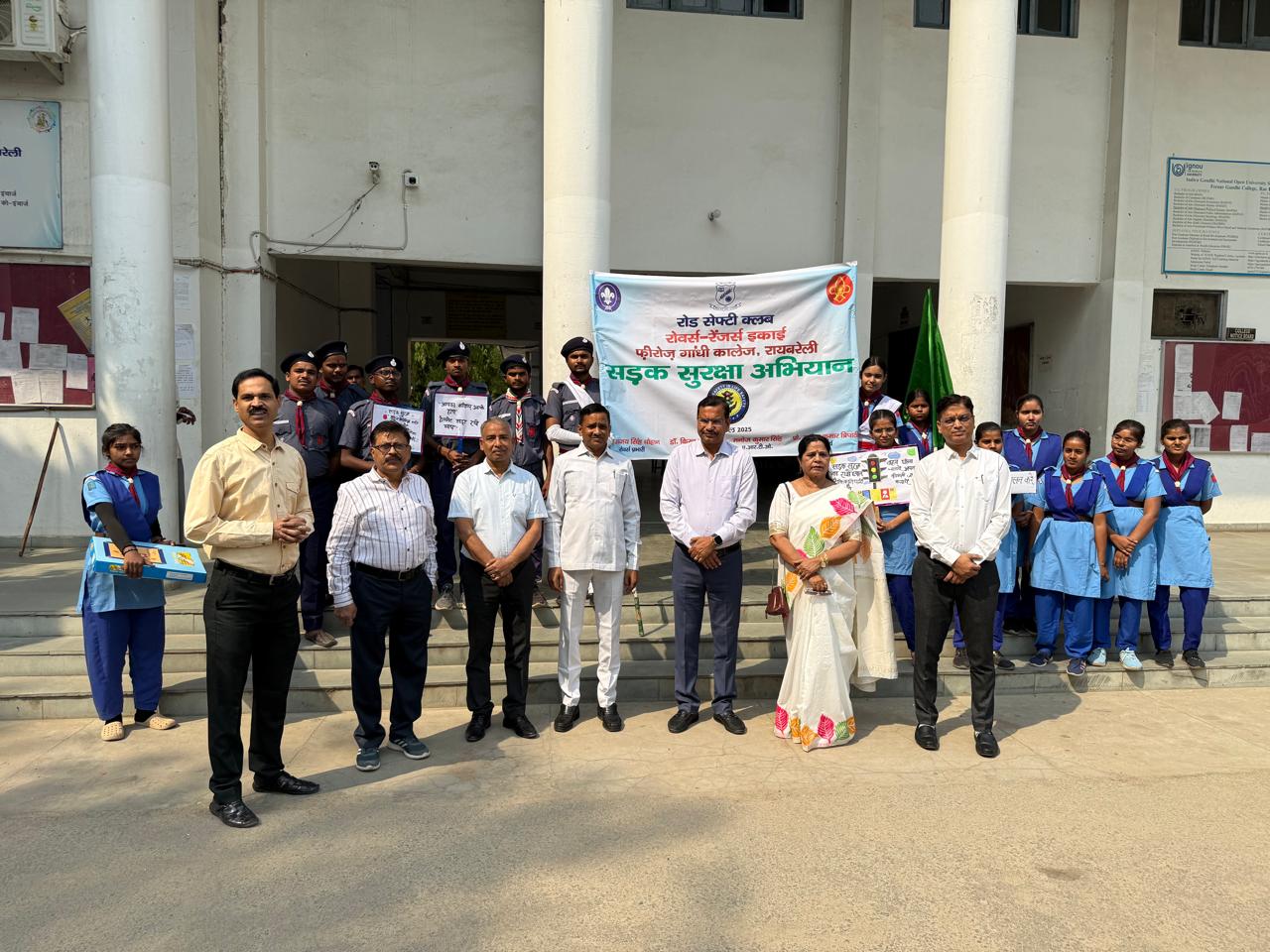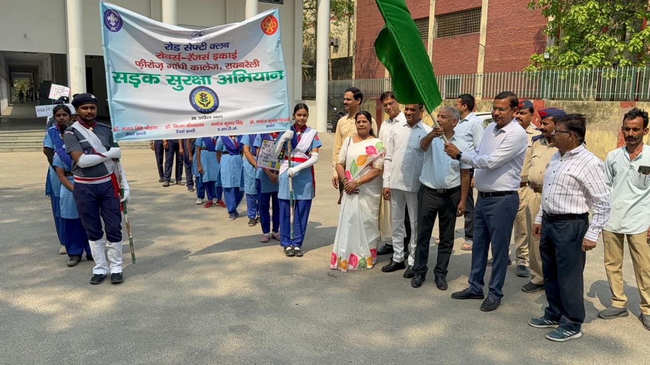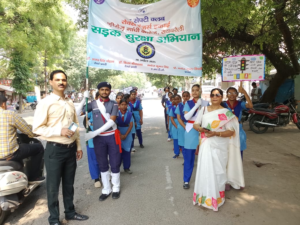 The Road Safety Club of the Rovers and Rangers Unit of the College took out a Road Safety Rally on the roads of Rae Bareli city to inspire the people to adhere to the road safety norms. The Rally was flagged off by Shri Manoj Kumar Singh, Assistant Regional Transport Officer (A.R.T.O.), Rae Bareli and Prof. Manoj Kumar Tripathi, Principal in the forecourt of the College in the presence of Prof. B.D. Mishra, Vice Principal, Prof. U.B. Singh, Head, Department of Sociology, Dr. Arvind Singh, Chief Proctor, Dr. Kiran Srivastava, Ranger Leader, Dr. Ajay Singh Chauhan, Rover Leader and the Rovers Crew and Rangers Team of the College.