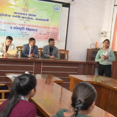 A Poster- making and a speech competitions were organised for the students of the College by Cultural Committee of the College on the theme “Uttar Pradesh b n the Path of Development and Tradition” (“विकास और परंपरा के पथ पर उत्तर प्रदेश”) on the occasion of Uttar Pradesh Day 2025 on 24.01.2025. The programme was inaugurated by the Principal, Prof. Manoj Kumar Tripathi. Dr. Alka Singh, the Convener of the Cultural Committee and Dr. Shamini Srivastava, the Co- convener of the Cultural Committee played important role in organising the programme. Dr. Iqbal Yusuf Ansari, Dr. Kiran Srivastava and Mrs. Anita Bajpai served as the anchors and coordinators of both the competitions.