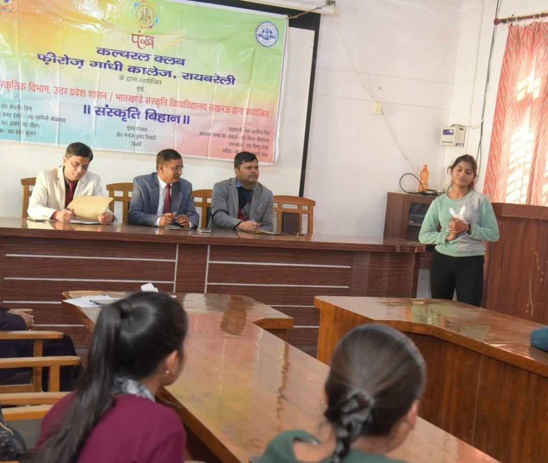 A Poster- making and a speech competitions were organised for the students of the College by Cultural Committee of the College on the theme “Uttar Pradesh b n the Path of Development and Tradition” (“विकास और परंपरा के पथ पर उत्तर प्रदेश”) on the occasion of Uttar Pradesh Day 2025 on 24.01.2025. The programme was inaugurated by the Principal, Prof. Manoj Kumar Tripathi. Dr. Alka Singh, the Convener of the Cultural Committee and Dr. Shamini Srivastava, the Co- convener of the Cultural Committee played important role in organising the programme. Dr. Iqbal Yusuf Ansari, Dr. Kiran Srivastava and Mrs. Anita Bajpai served as the anchors and coordinators of both the competitions.