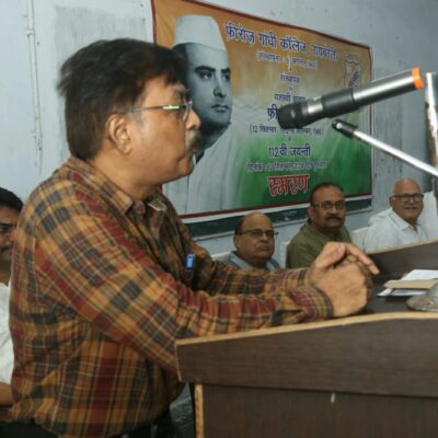 The guests and the members of the audience were welcomed by the Principal, Prof. Manoj Kumar Tripathi. The Managing Secretary, Shri Atul Bhargava threw light on the close association between Feroze Gandhi and the Founder Managing Secretary of the College, Onkar Nath Bhargava during the years when the idea of establishing a Degree College for the higher education of the students of Rae Bareli and surroundings areas was taking shape. The Senior Vice President of the Managing Committee, Shri Rajeeva Bhargava spoke eloquently about the institutional values and visions of the Founder President and the Founder Managing Secretary which have sustained and nurtured the College over the last 64 years since its foundation in the year 1960. The Joint Secretary of the Managing Committee, Dr. Sanjay Kumar Pandey traced in brief the development plans to be adopted by the College for its development and upgradation in future.