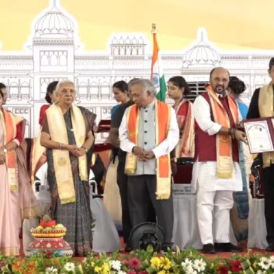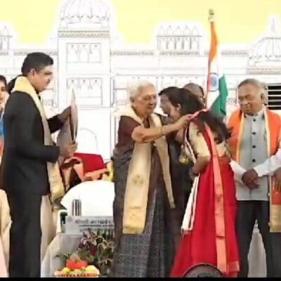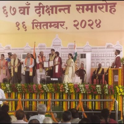 (ii) Three Gold Medals and cash prize awarded to Janhvi Patel, M.A. (Sanskrit), Semester- IV, 2023- 24: Janhvi Patel, a Post Graduate student of the Department of Sanskrit in Feroze Gandhi College, Rae Bareli was awarded Raja Sir Harnam Singh- Harcourt Butler Gold Medal, 2024, Kumari Vimla Puri Gold Medal, 2024, Smt. Chandra Devi and Shri Radha Krishan Arunvanshi Gold Medal, 2024 and Smt. Indrani Devi Memorial Cash Prize, 2024 in the 67th Convocation of the University of Lucknow held on 16.09.2024 for having secured the highest aggregate percentage of marks in M.A. (Sanskrit) Programme (Semester- I to Semester- IV), 2022- 24 of the University of Lucknow.