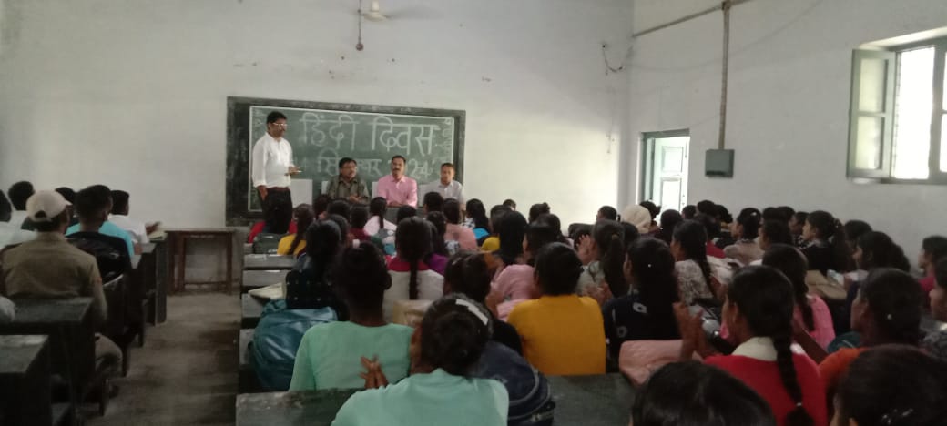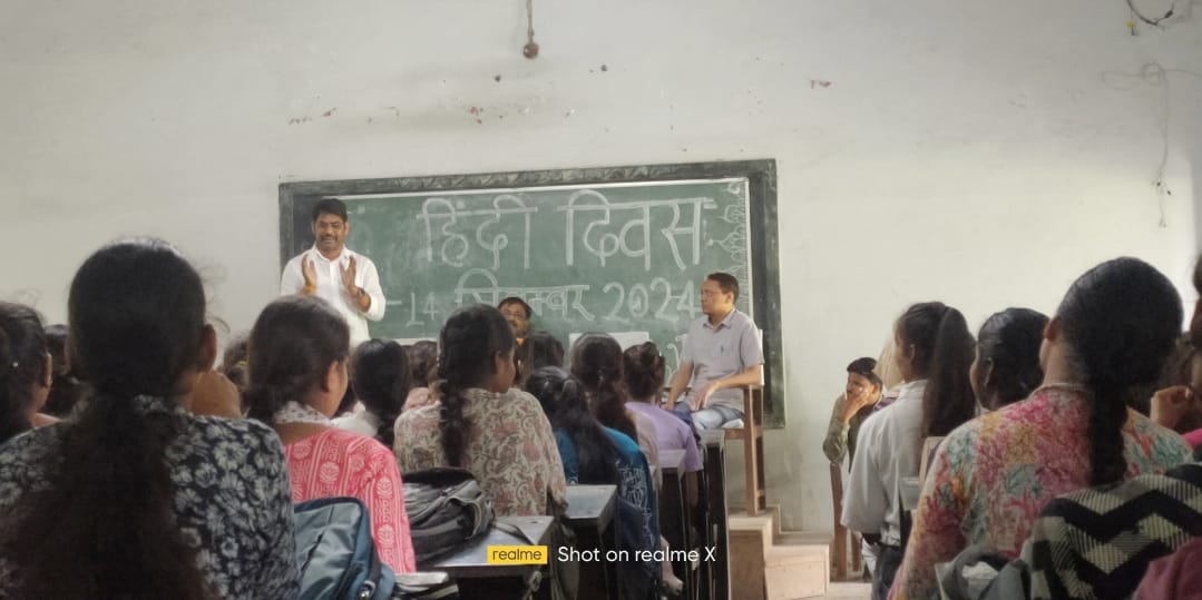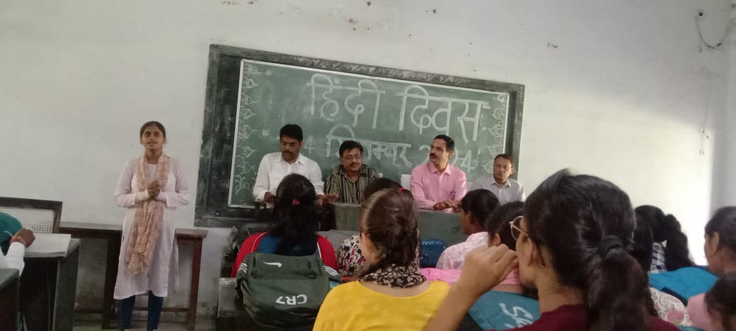 A function to mark the ‘Hindi Diwas’ 2024 was organised with zeal, enthusiasm and passion by the Department of Hindi of the College. Prof.B.D. Mishra, Professor and Head, Dr. Ajay Singh Chauhan, Assistant Professor Chauhan, Dr. Santosh Pandey, Assistant Professor and Dr. Ajendra Singh, Assistant Professor and many students of the Department of Hindi were present and delivered their inspiring addresses on the occasion.