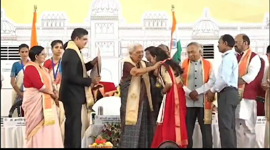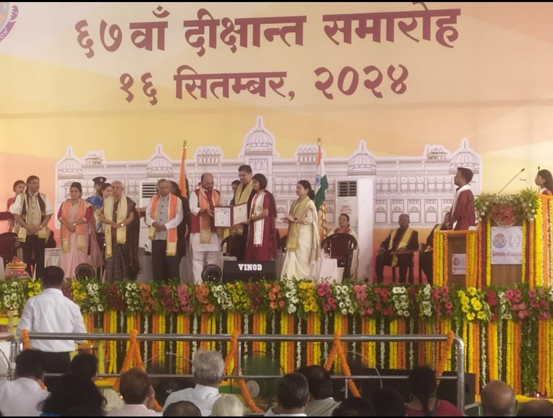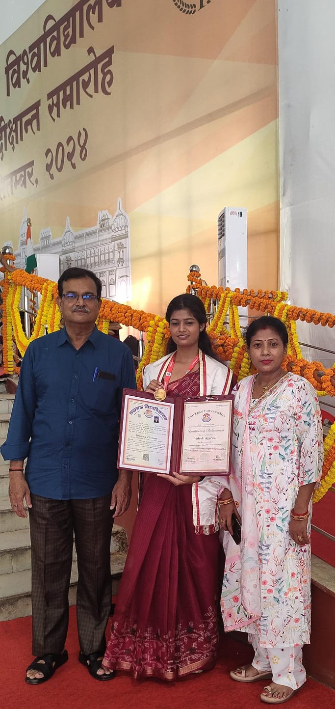 (ii) Three Gold Medals and cash prize awarded to Janhvi Patel, M.A. (Sanskrit), Semester- IV, 2023- 24: Janhvi Patel, a Post Graduate student of the Department of Sanskrit in Feroze Gandhi College, Rae Bareli was awarded Raja Sir Harnam Singh- Harcourt Butler Gold Medal, 2024, Kumari Vimla Puri Gold Medal, 2024, Smt. Chandra Devi and Shri Radha Krishan Arunvanshi Gold Medal, 2024 and Smt. Indrani Devi Memorial Cash Prize, 2024 in the 67th Convocation of the University of Lucknow held on 16.09.2024 for having secured the highest aggregate percentage of marks in M.A. (Sanskrit) Programme (Semester- I to Semester- IV), 2022- 24 of the University of Lucknow.